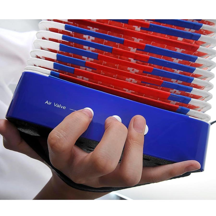 Dečija harmonika je dizajnirana sa kopčama za kaiš sa obe strane, što obezbeđuje sigurno držanje i sprečava slučajno ispuštanje.