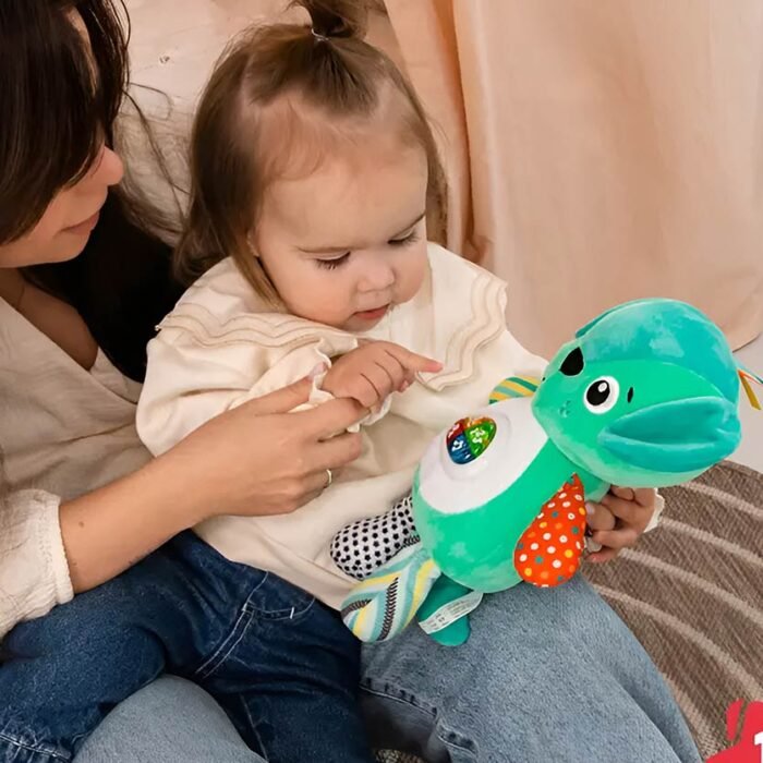 Ima četiri svetleća dugmeta na stomaku koja aktiviraju popularne melodije, edukativne pesme i zabavne pesme.
